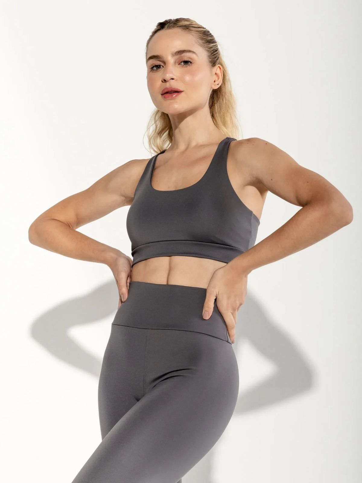 Fabricado en una tela de alta compresión con acabado mate, moldea y estiliza sin perder comodidad. La calza de tiro alto cuenta con una pretina ancha que controla el abdomen, brindando soporte y confort. Combinado con un top estructurado, este conjunto está pensado para ofrecer seguridad y estilo en cada movimiento.